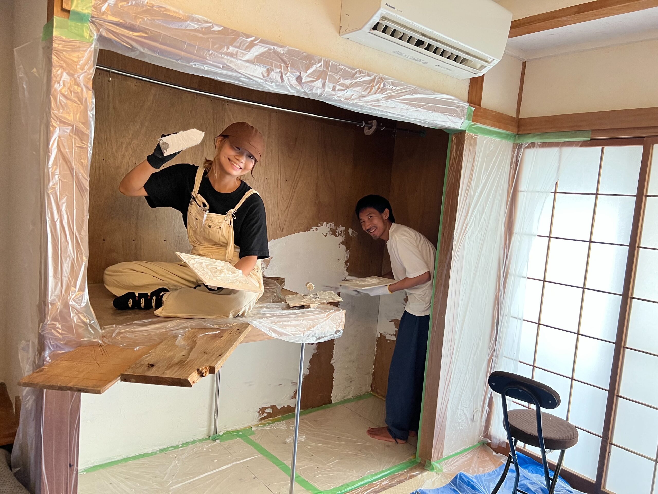リネン類が気持ちよく整えられるよう、押し入れの中も漆喰、しかも2度塗り!!いたしました。