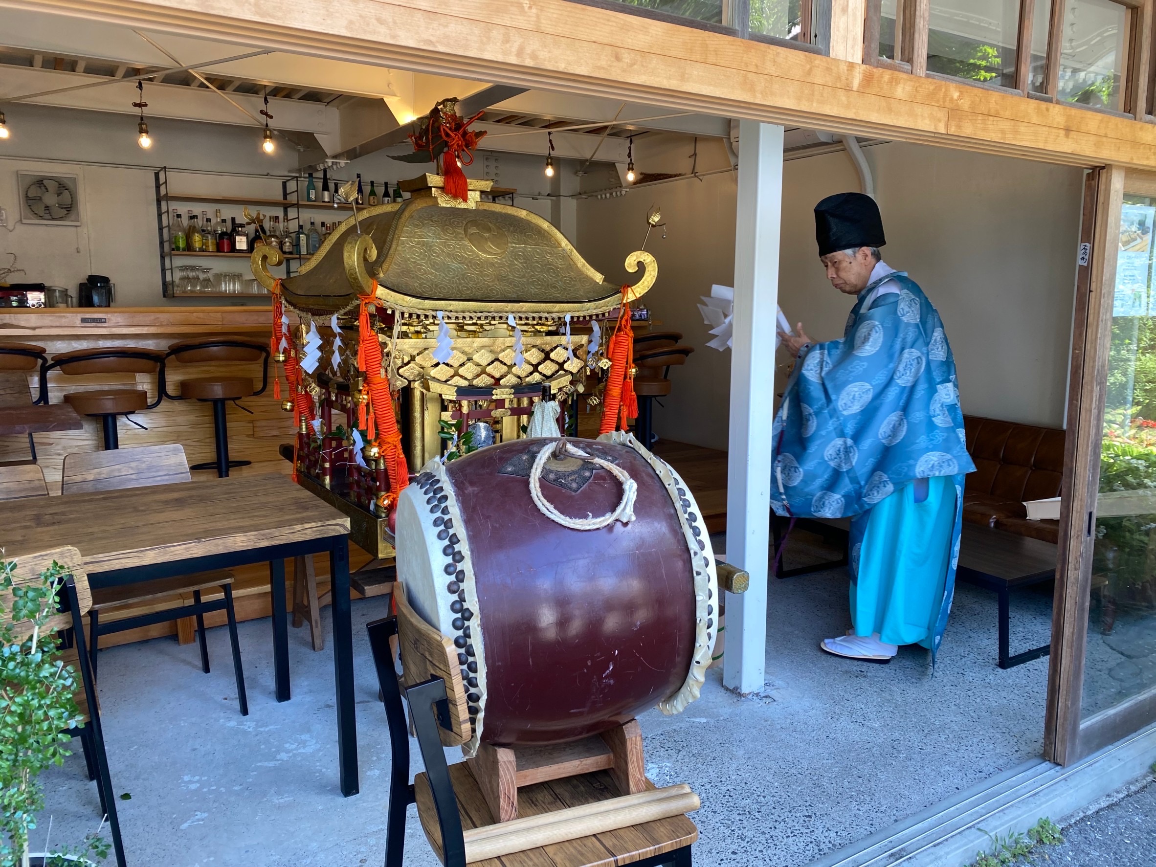 俵山ではこの立派なお神輿を旅館さんや飲食店などお店の中まで入れて、宮司さんがご祈祷してくださいます。