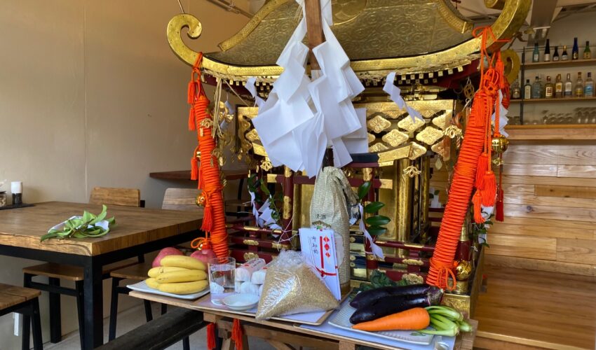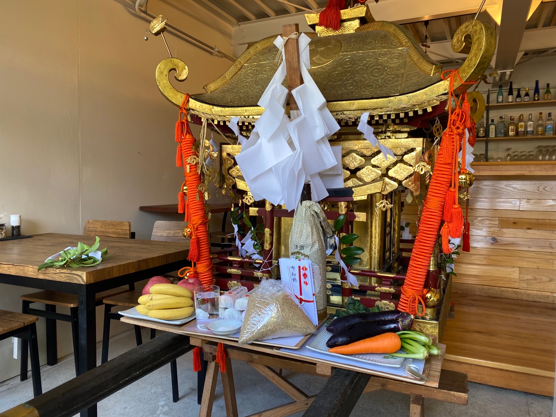 俵山ではこの立派なお神輿を旅館さんや飲食店などお店の中まで入れて、宮司さんがご祈祷してくださいます。