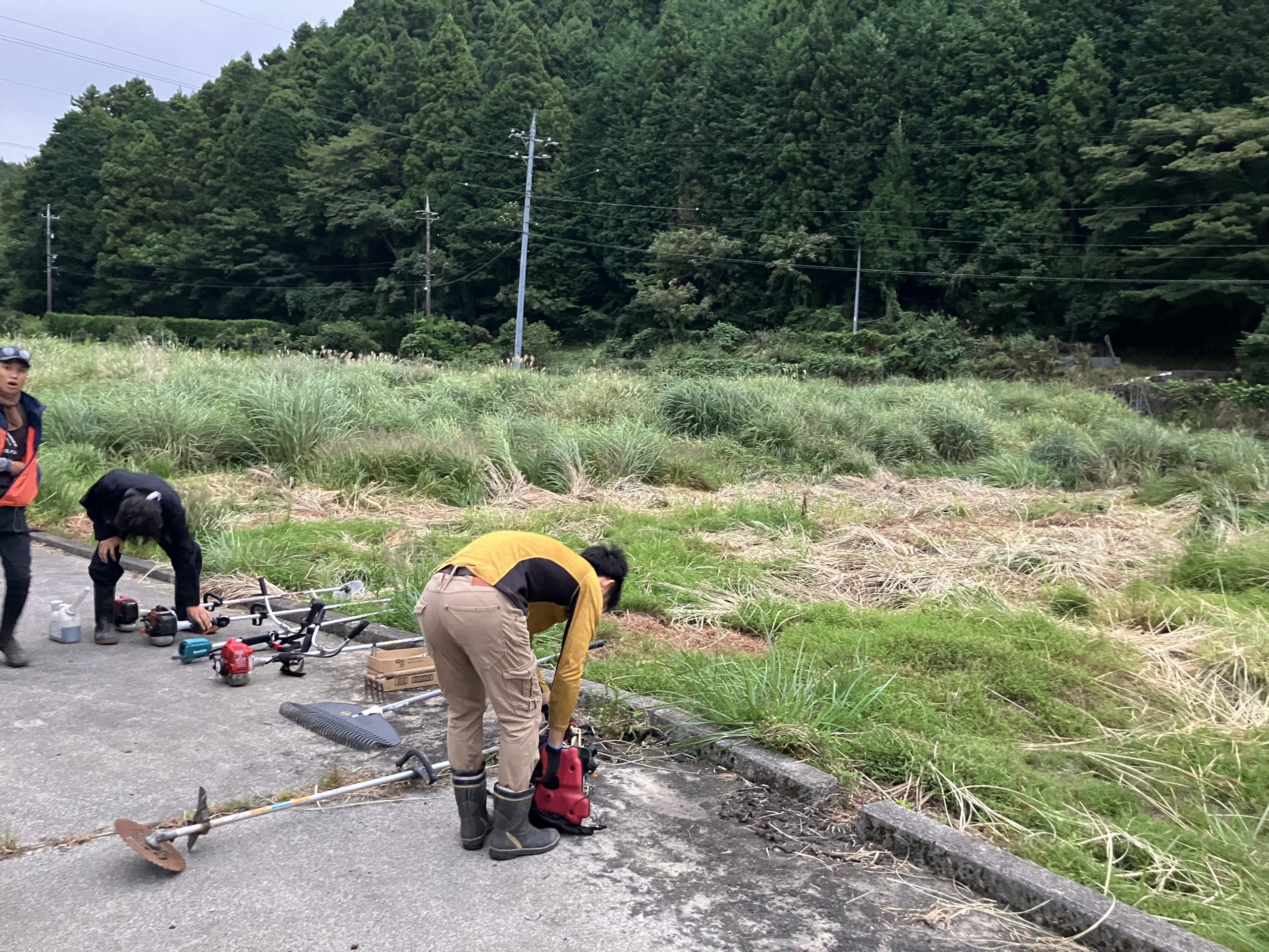 俵山ビレッジは、マギーを中心に田んぼを始めました!元々地域の方がやられていた田んぼ。今では使っておらず、雑草が背丈よりも伸びていました。まずは草刈から。みんなで朝から集まり、男性陣は草刈機を持ち、草を刈り、女性陣は刈ってくれた草を集める作業を。みんなで分担・協力して作業をしました。