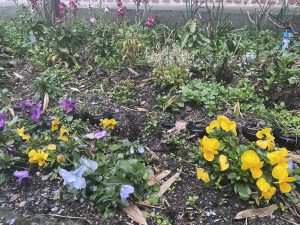 日々せっせと手入れをしている花壇にもしっかり雪が数センチほど積もり、パンジー&ビオラが雪に埋もれてしまっていました。寒さで枯れてしまわないか心配でしたが、雪を取り除いたらみるみる復活!何事もなかったかのように綺麗なお花を咲かせてくれています。俵山で植物を育てるには、寒さや雪に強い植物を植えるのが必須になるので、パンジー&ビオラは冬の期間には欠かせないお花だ!と実感しました。