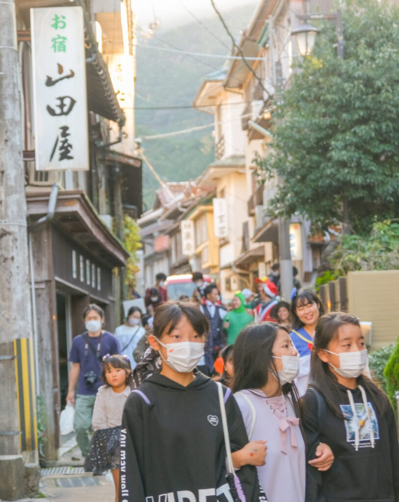 俵山の温泉街に響くこどもたちの声。