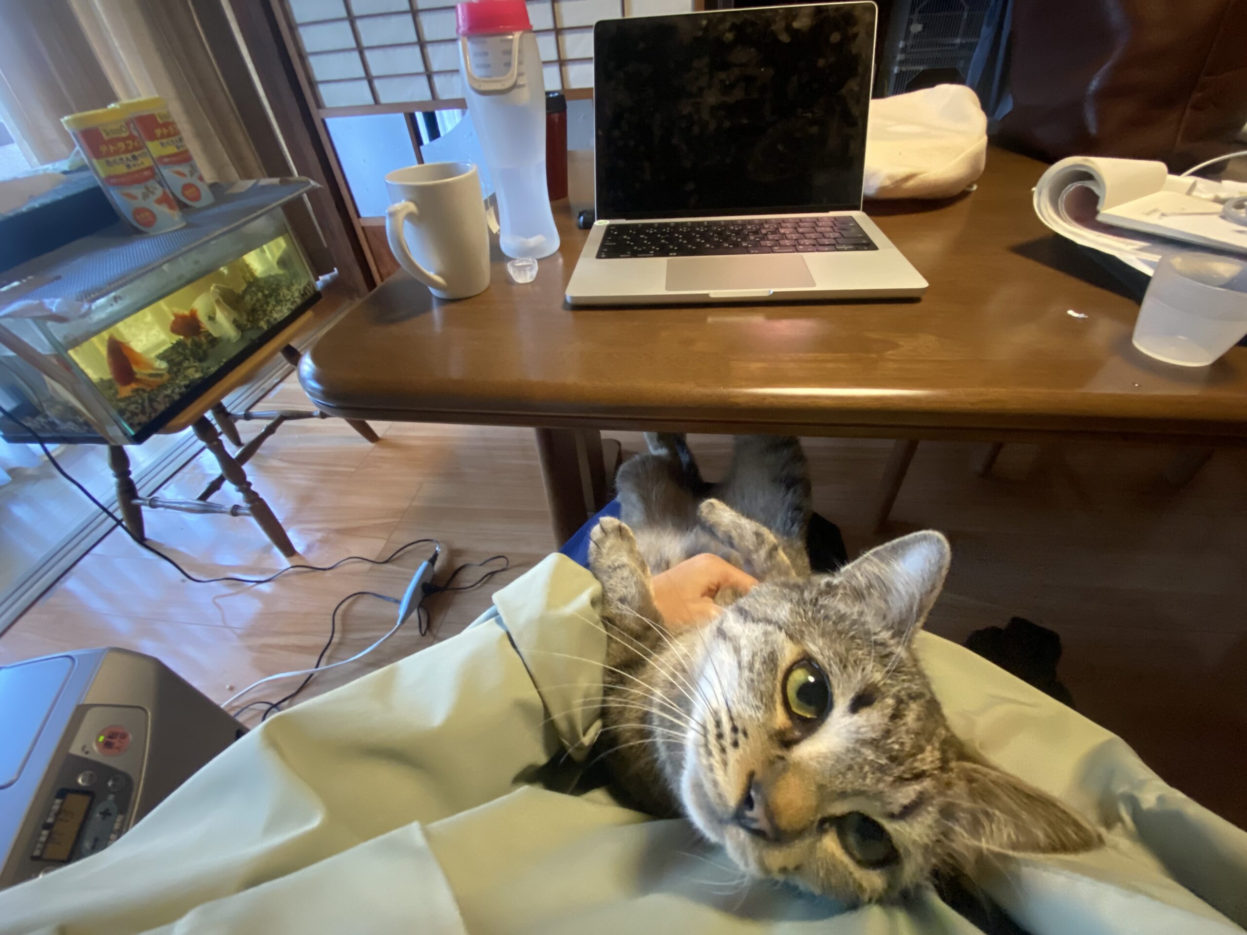 とてもお世話になっている俵山の電気屋エレショップの中原さんが見つけ、預ける先がなく旅館さんの一室で飼われていた状況でした。