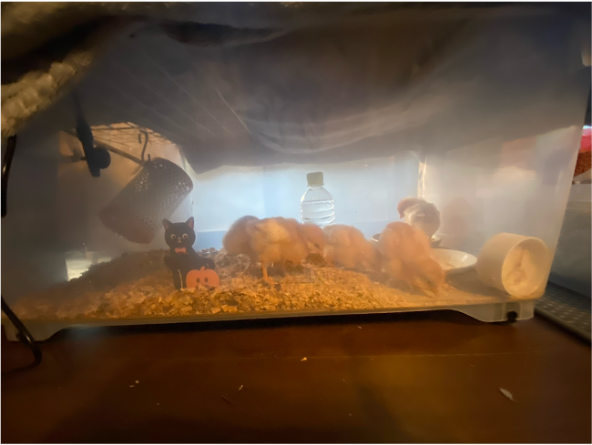 6月に鶏小屋は完成したものの、大切な命をどこから、どんな形でいただくかを検討した結果、10月4日に6羽のヒヨコを灯炬庵にて迎え入れました。